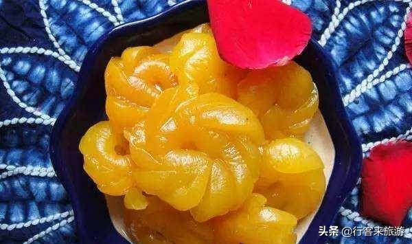 雕梅是白族传统名特食品,雕梅因在青梅果上雕刻花纹而得名。据史书记载,远在唐代南诏时期,就有探亲访友相互馈赠雕梅的风俗。