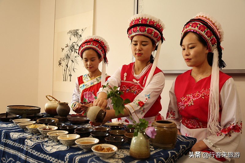 "三道茶"寓意人生"一苦,二甜,三回味"的哲理,现已成为白族民间婚庆、节日、待客的茶礼。"三道茶"歌舞表演也成了大理旅游的保留节目。