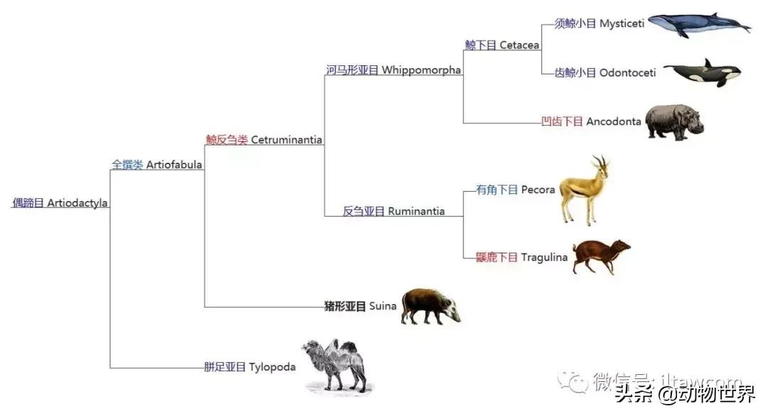 偶蹄动物分为两大类,然而各类内部形态差异很大。