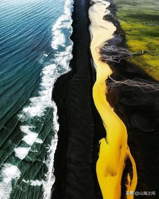 9.冰岛的海岸线,一边是黑沙滩,一边是湛蓝的海洋,再加上蜿蜒的河流和绿色的植被,像是一幅完美的自然拼图。