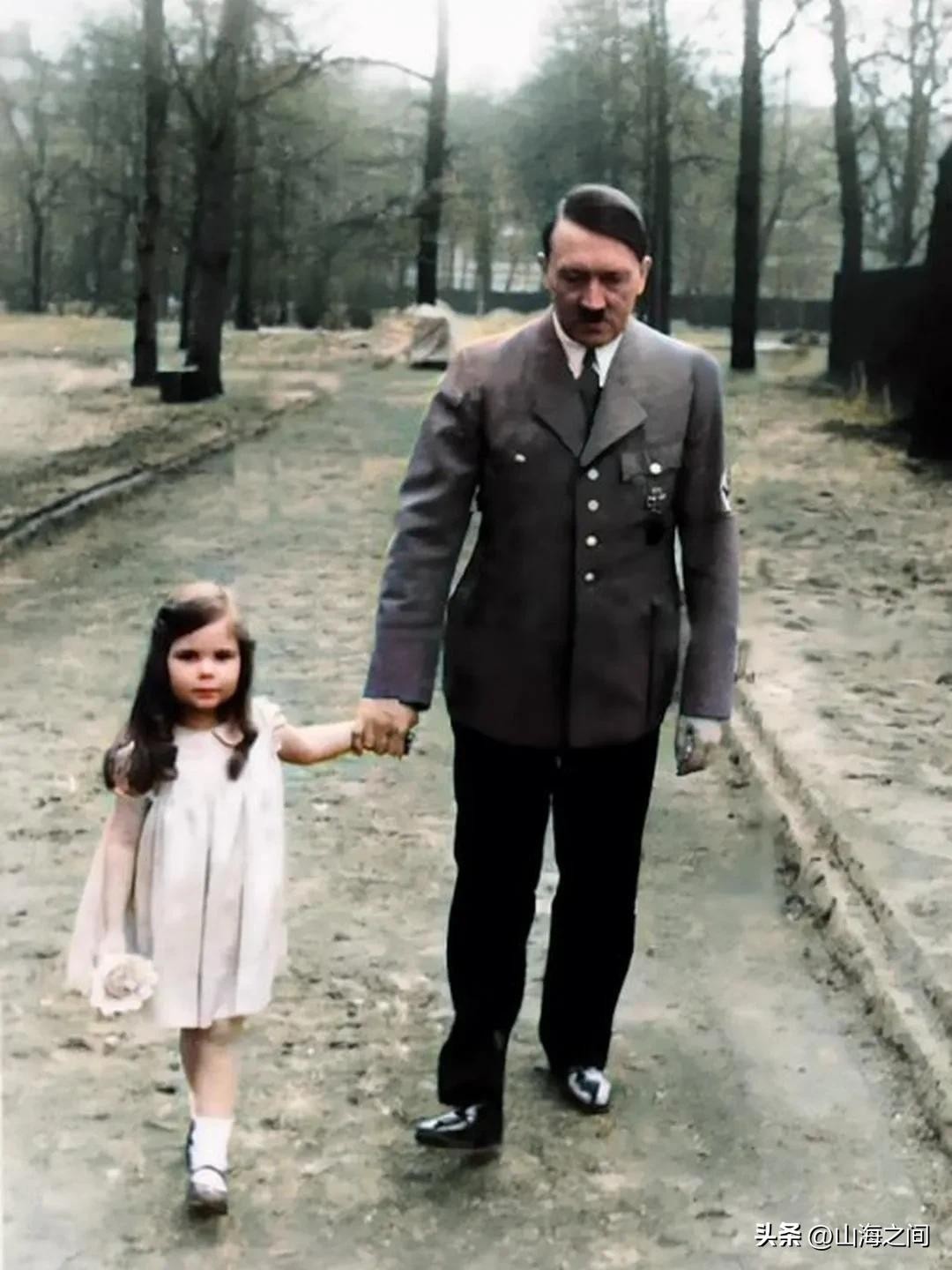 10.希特勒牵着女儿海尔加·戈培尔小手在散步,温馨的一幕,然而,在1945 年,海尔加和她的兄弟姐妹在希特勒的地堡里被父母注射了氰化物。父毒不食子,这是多么的残忍