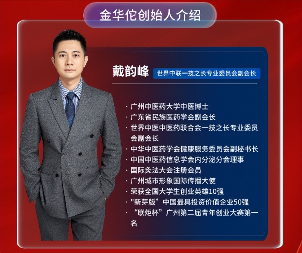 戴韵峰博士毕业于广州中医药大学中西医结合专业七年制,曾是广东省中医院重症医学科临床医生,后成为中医知识管理和应用专业博士生。他对中医发展现状深感担忧,认为西医如大厦建起,中医却似四散小土丘。于是他创立金华佗,2017 年初启动中医师承项目,打造“一站式中医执业孵化平台”。戴韵峰博士收获众多荣誉,还引领大数据时代的经络辩证。他指出经络辨证是以经络学说为依据的辨证方法,介绍了经络系统的多项功能及诊察法。