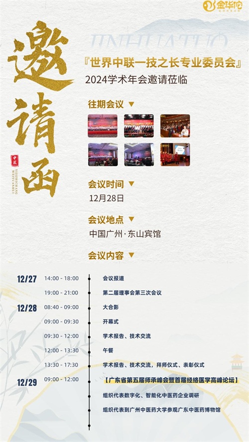 金华佗诚邀你参加世界中联一技之长专业委员会——2024学术年会!