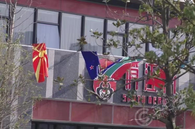 2012年,合肥俏江南为迎接皮尔卡丹的到来,在店门口悬挂了多个国家的国旗,其中就有北马其顿国旗,正好被一个网友拍到,发到了网上,说俏江南悬挂某国的“狗皮膏药”