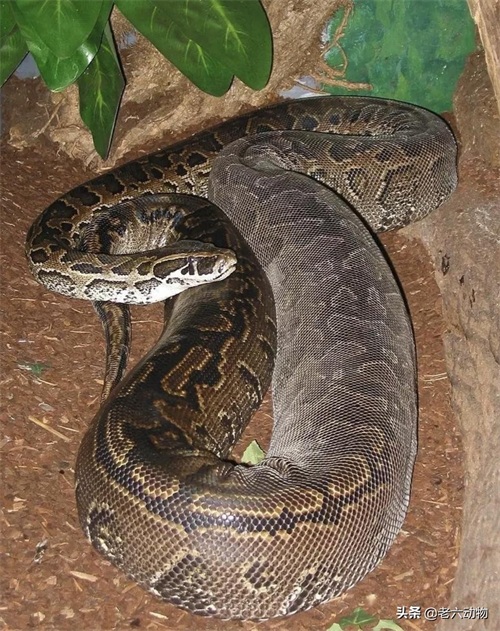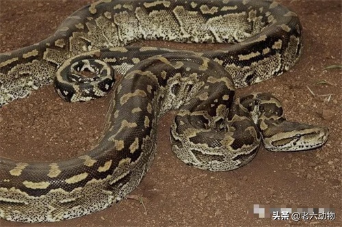 非洲岩蟒的体色以棕色为主,身上有许多不规则的橄榄色花纹。
