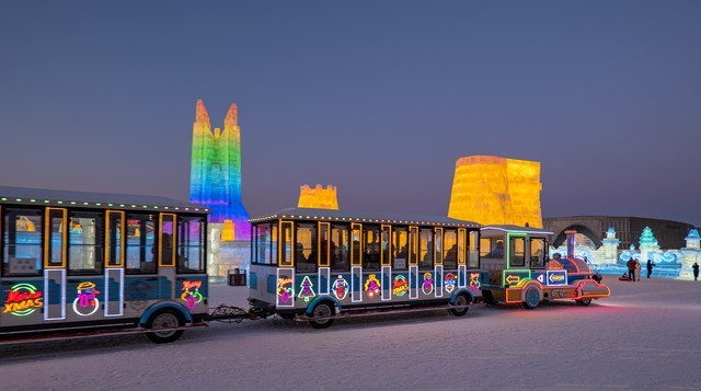- 超级冰滑梯:滑道数量增加到24条,需在官方微信公众号提前预约,坐在特制爬犁上从20多米高处乘风而下,体验风驰电掣的快感.