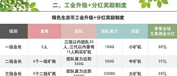 同时,“GRB绿色环保链”将会员划分为一级工会、二级工会、三级工会、四级工会四个级别,会员可以通过发展下线的方式晋升级别。会员在发展下线的过程中除了可以获得直推奖外,当达到一定级别以后,还可以获得分红奖等奖励。