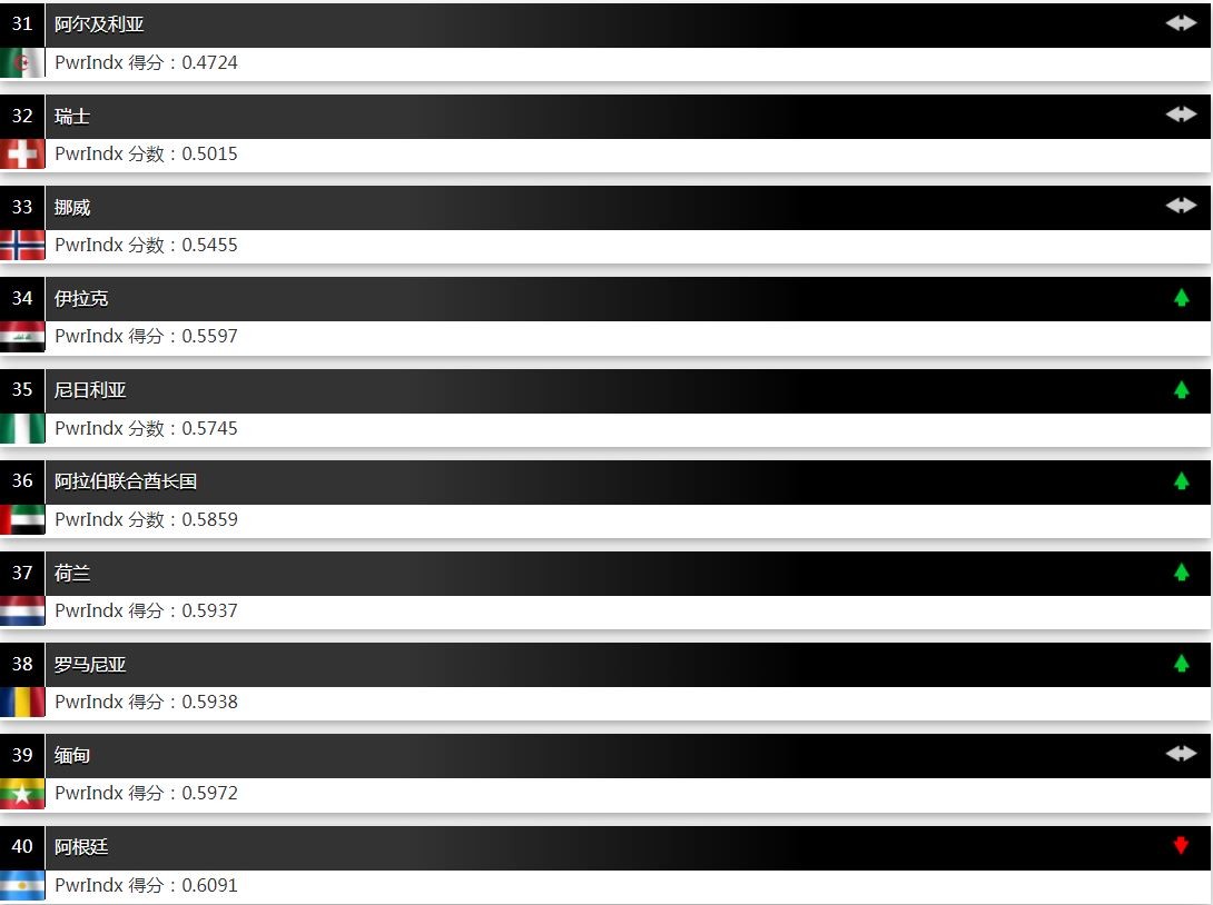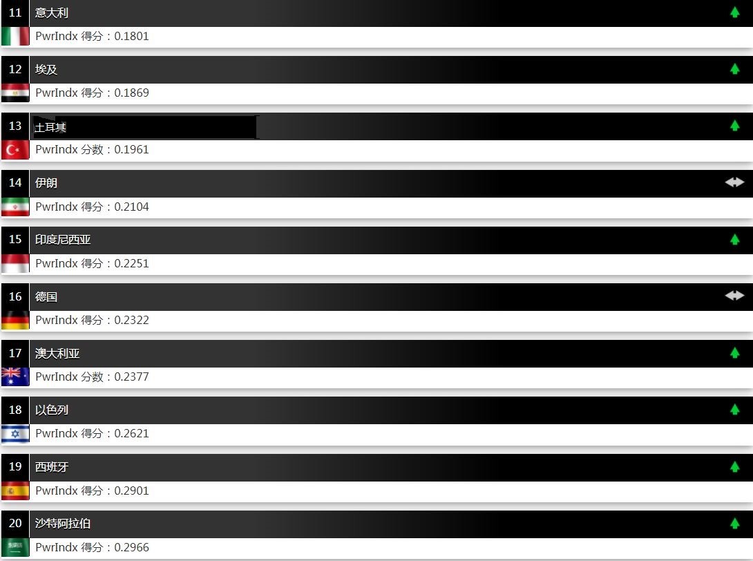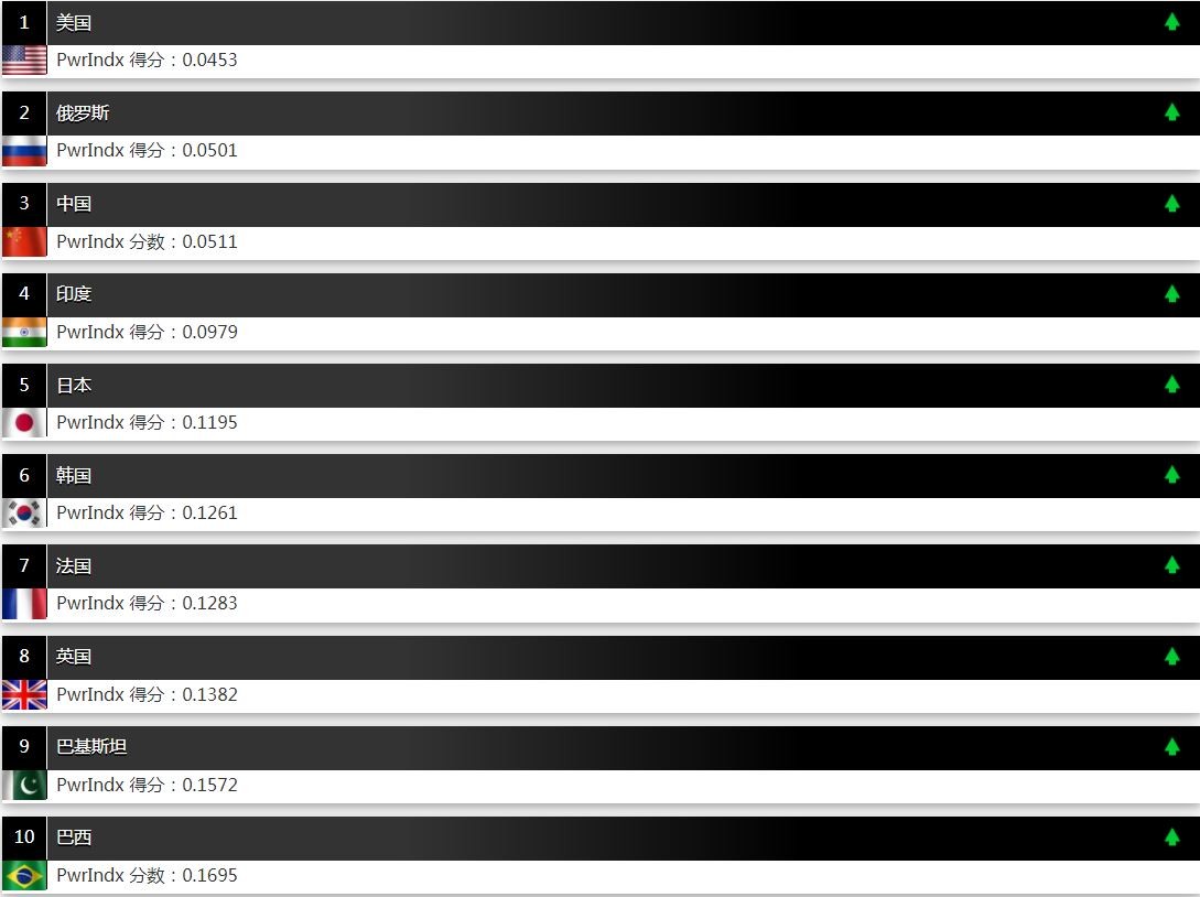 令人欣喜的是,海军力量中国排第一。这几年像下饺子一样造战舰,效果还是很显著,但我们还是不能骄傲,在航空母舰和直升机航母上还需要持续投入。