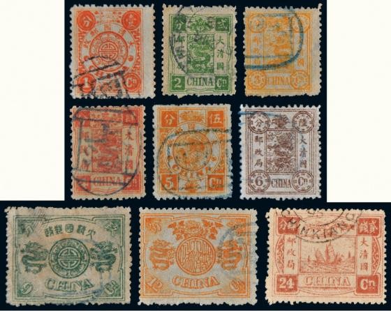1897年发行的蟠龙票全套共12枚,面值从半分到5元。