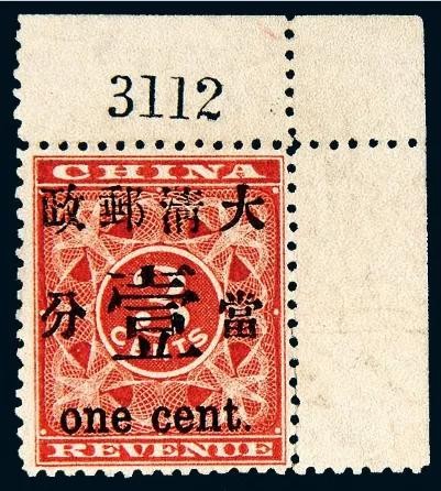 1896年的红印花票红印花票本是一种印花税票,不是邮票,因急用,加盖“大清邮政”“暂作洋银”等字样,当作邮票用。