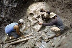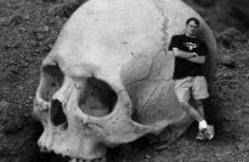 考古界不敢公开的秘密,1986年底,墨西哥一家媒体报道,那年在墨西哥城东部又发现了一个完整的巨人头颅骨,以及巨人使用过的石残片等遗物,那块头颅骨高宽各50厘米和25厘米,犬牙比现代人大2.5倍,估计身高在3.5至5米之间。