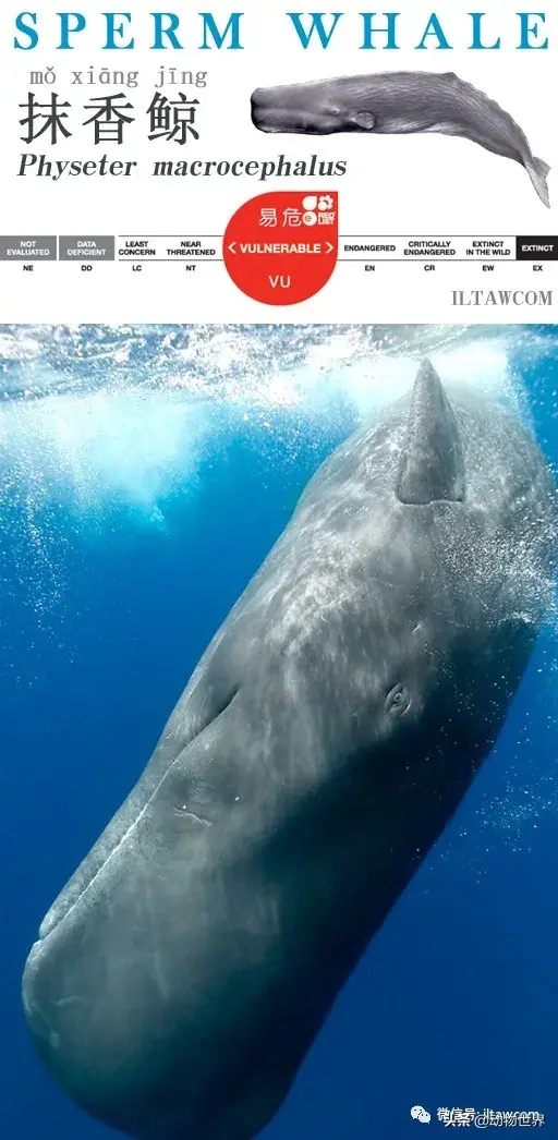 抹香鲸 又称巨抹香鲸、卡切拉特鲸,是世界上最大的齿鲸,是全球分布的种类,有明显的季节性迁徙,主要吃鱿鱼,具有复杂的社会结构。在捕鲸年代中,抹香鲸因为头部的鲸油应用广泛,被视为猎捕的重要目标,捕捉数量是近期捕鲸中大型鲸被捕最多的一种。