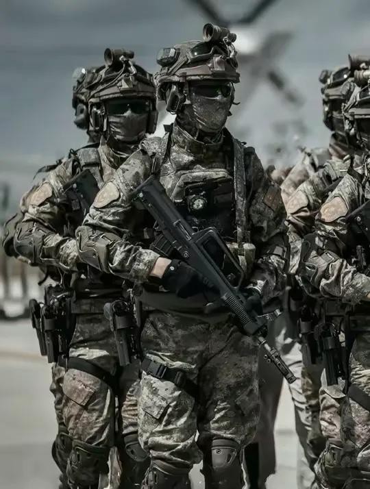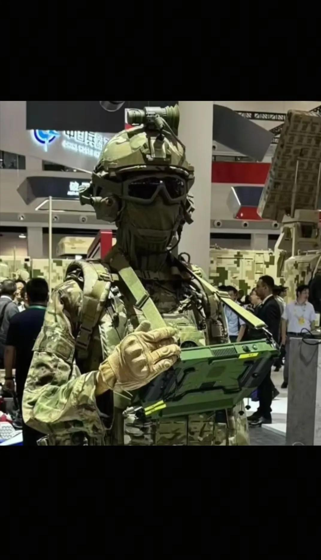 来简单介绍一下这一身都有什么?军装为“星空迷彩服”和“21式迷彩服2种”。突击步枪为QBZ191或95式2种。战术背心。 头盔为“AR智能头盔”,还有手枪,这只是普通单兵装备,像这种单兵装备,会根据不同兵种不同的设备,如通讯兵,就自带一个移动通讯装置。