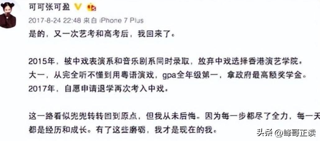 不得不感慨,学霸就是学霸,即使过去了一年多,张可盈依旧顺利拿到了中央戏剧学院的录取通知书。