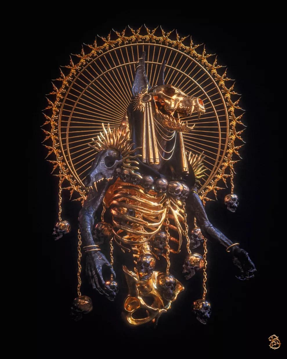 可以加入神秘主义元素,比如天主教的十字架、古埃及神话、希腊神话中的元素让画面充满异想感和神秘感。