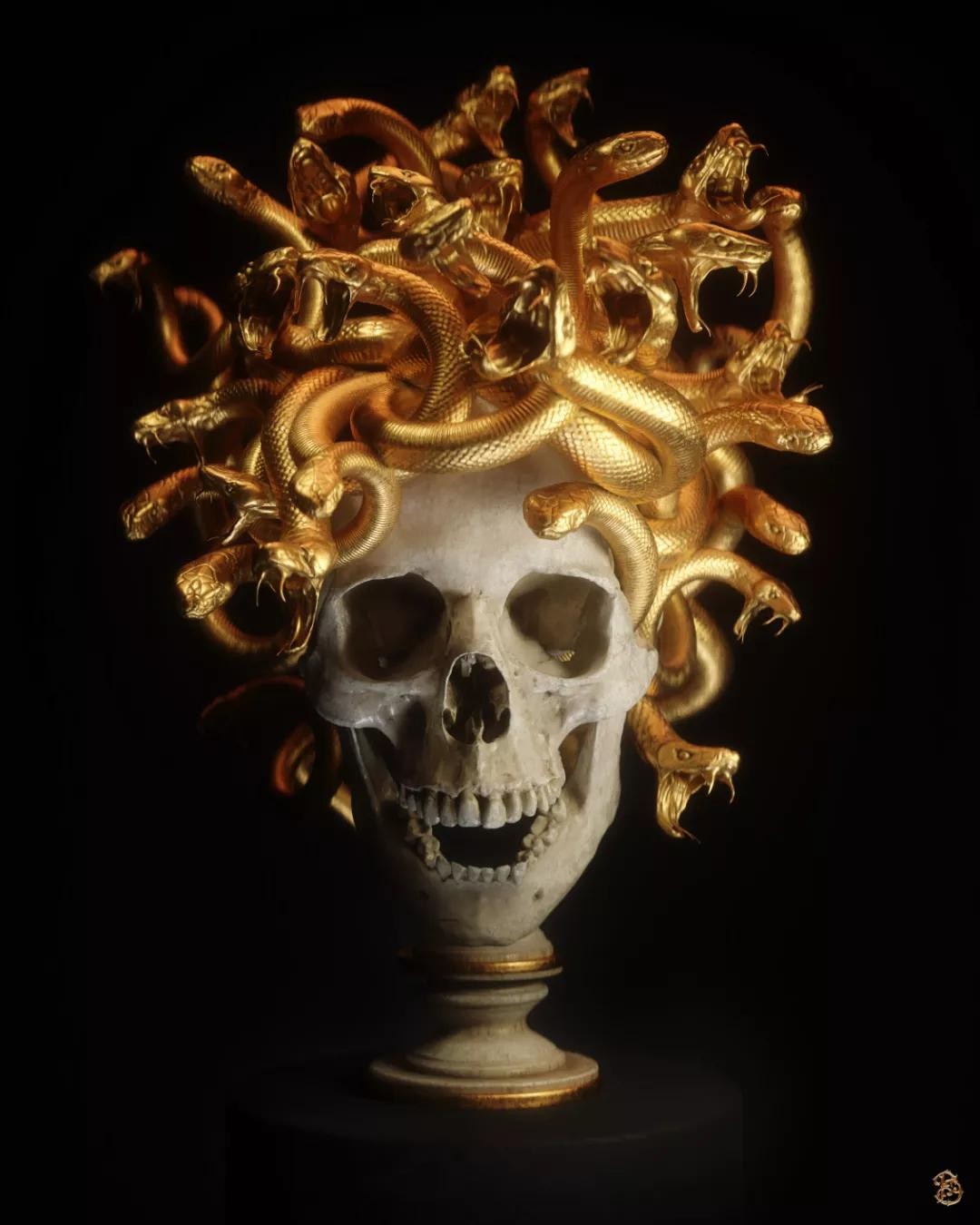 比如插画师Billelis的作品。他常用超现实主义来展现他对死亡与永生的思考。神秘主义元素与骷髅、鲜花产生了一场美妙的邂逅。