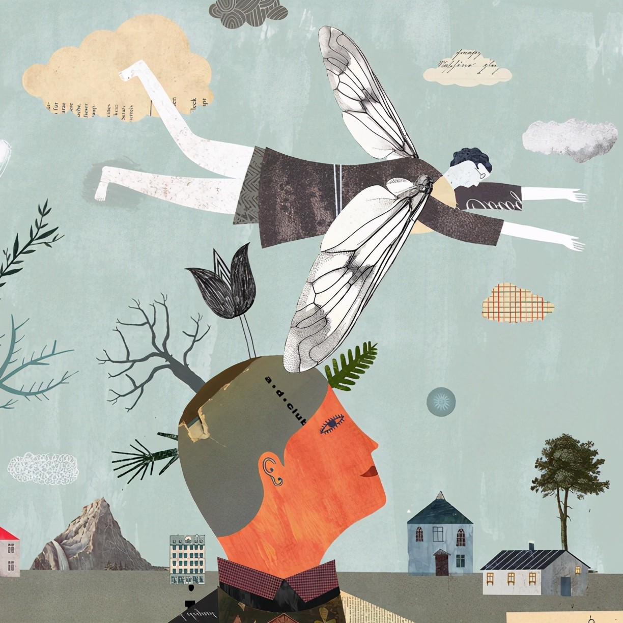 还可以创造抽象风的拼贴作品,比如插画师Gina Startup采用了报纸拼贴、丙烯和photoshop等综合媒介。