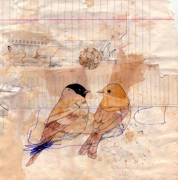 例如,插画师diedie利用被遗弃的材料进行创作。泛黄、陈旧、有污渍的底纹纸和用石墨铅笔、水彩、钢笔手绘的小动物形成了鲜明的对比,让画面看上去很有趣味性。