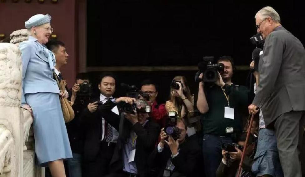 2014年,玛格丽特和亨里克一起前往故宫博物院游玩,照了一张有趣的合照,照片上的亨里克仰头望天,把手揣在兜里面,十分憨态可掬。