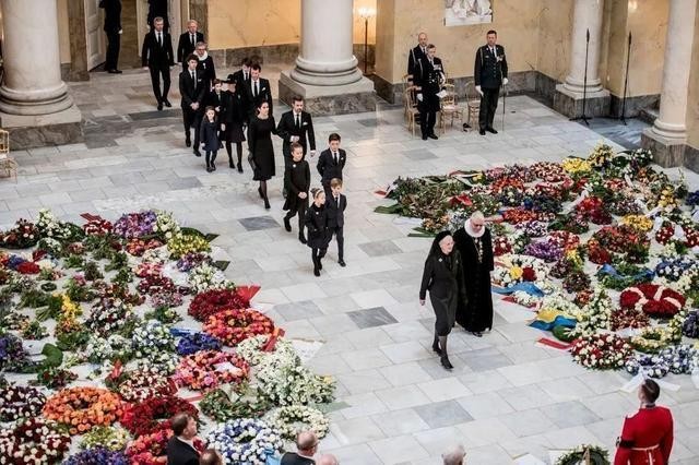 玛格丽特二世在葬礼之前都不知道,亨里克在生命最后的时刻,还费心为她准备了这样的浪漫,让她穿着一身黑衣,从一朵朵鲜花中走过。