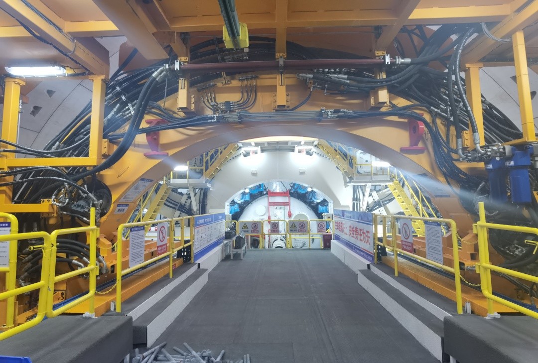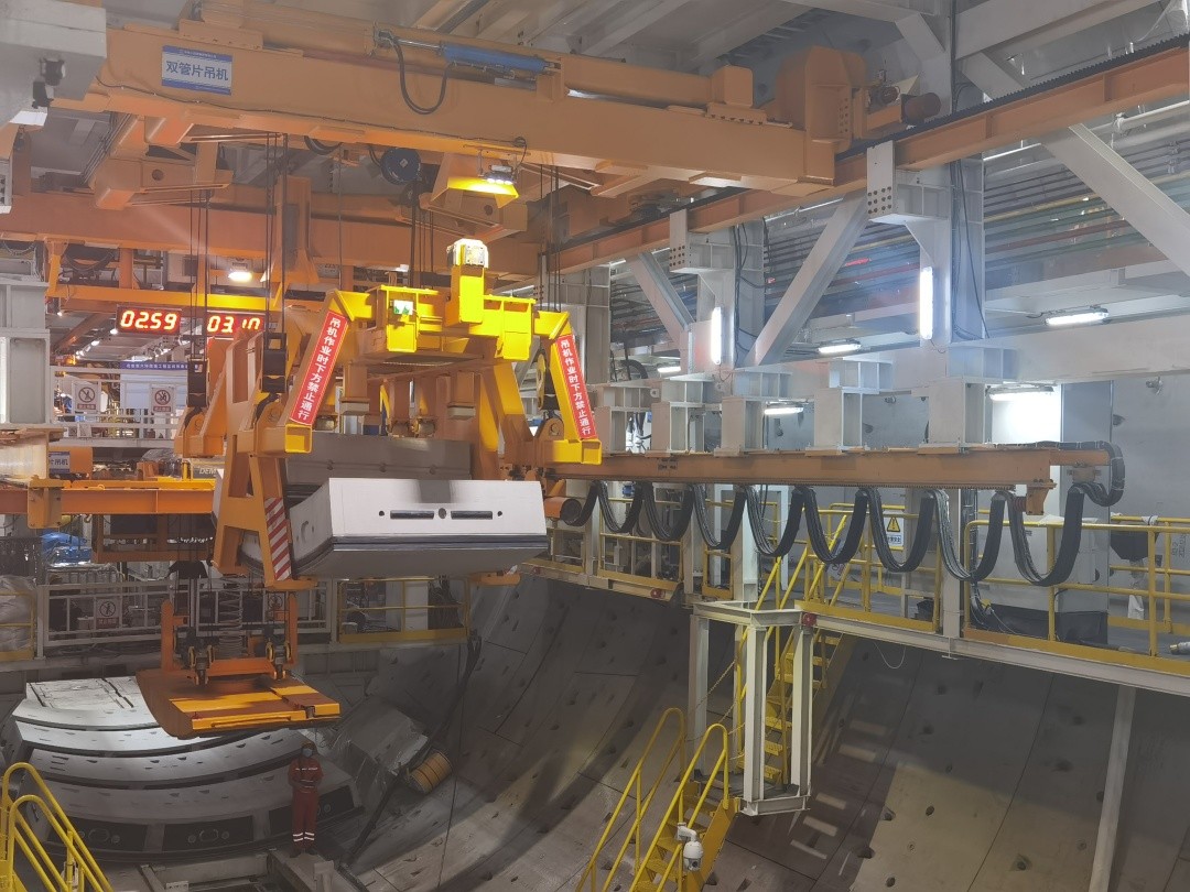 正在进行隧道管片拼装的盾构机/记者拍摄