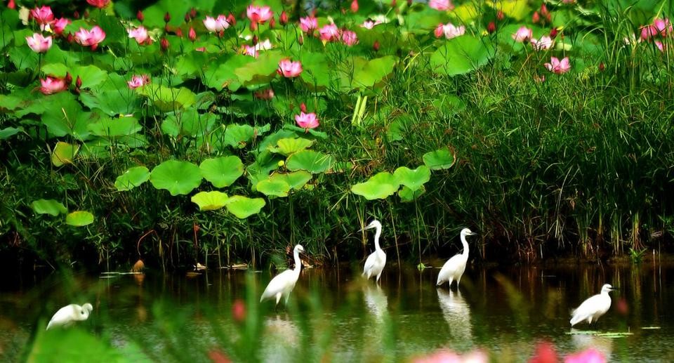景点环境独特,清波荡漾,水拥荷围,充满诗情画意。漫步栈桥,或湖中泛舟,可全方位体验独具浓郁湖区特色的渔家风情。盛夏时节,可以欣赏到“接天莲叶无穷碧,映日荷花别样红”的盛景;深秋时节,置身百亩芦苇荡,邂逅“蒹葭苍苍 白露为霜 所谓伊人在水一方”的浪漫。