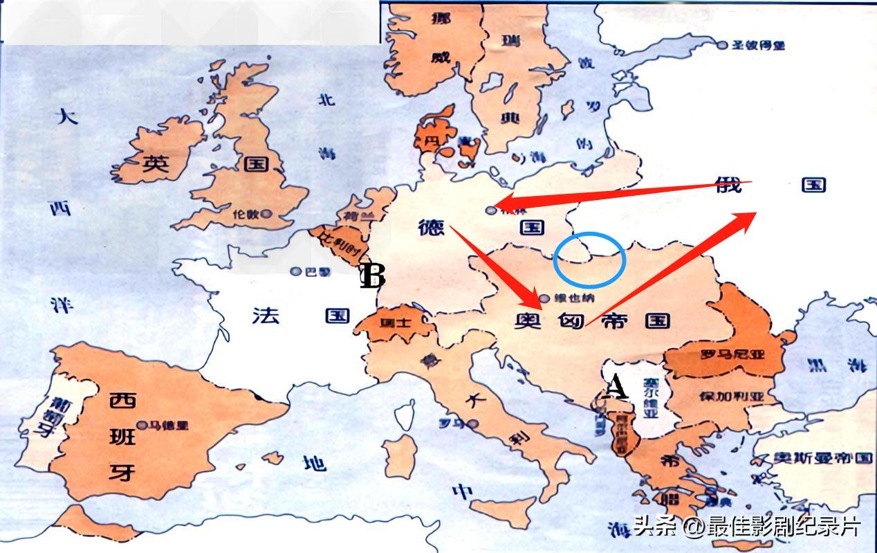德国一看俄罗斯帝国怒了,马上就和奥匈帝国达成了军事同盟。(这里提醒一下,以前的军事联盟就像是:如果法国来打我"德国",你不要去帮助法国打我,你保持中立就可以了。现在的意思是如果谁来打我,你和我一起去打他)。