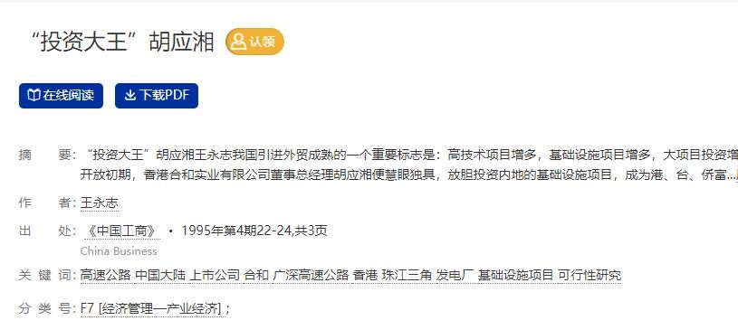 参考资料:[1]王永志.“投资大王”胡应湘[J].中国工商,1995(4):22-24