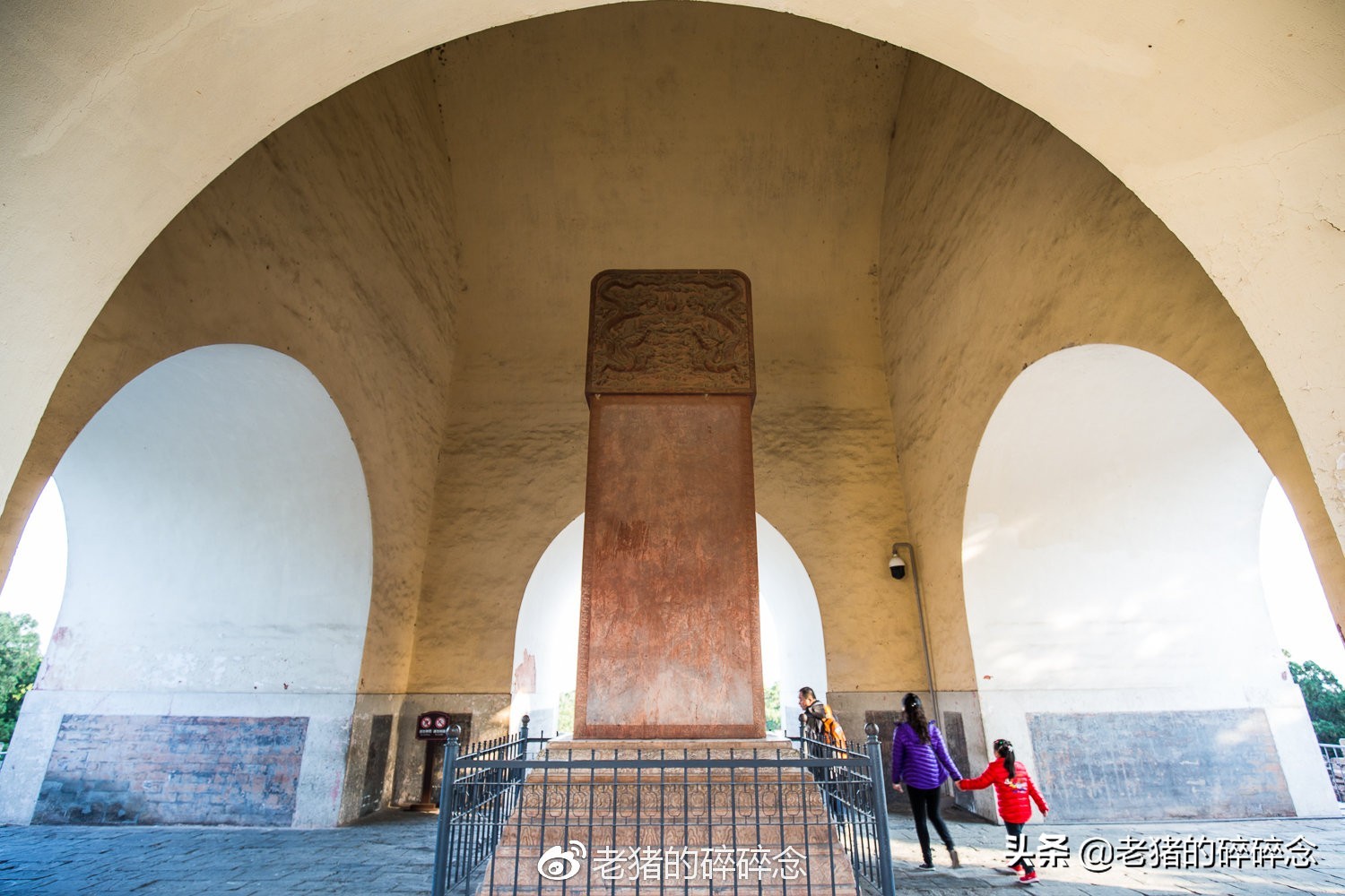 地表建筑物很多都已经顷颓,但唯独这座方城明楼却幸存了下来,随历经数百年,但依旧完好无损。老猪爬上明楼后,才发现其奥秘,原来远处看这座建筑特别酷似木构建筑,然而它竟然无片木寸板。它所有的结构全都是巨石雕刻拼砌而成,采用了砖券顶结构,故而无木构梁架,所以几百年来它一直坚固完好如初,厉害!