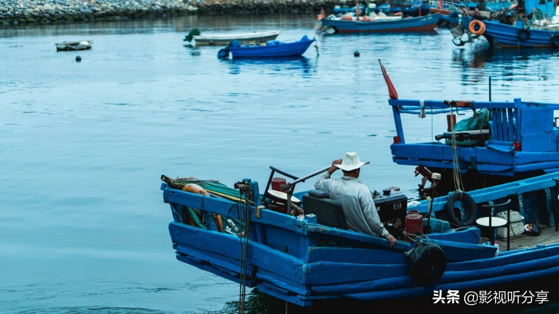 渔民开着自家的渔船停泊靠岸,感觉会开船的大叔很酷。
