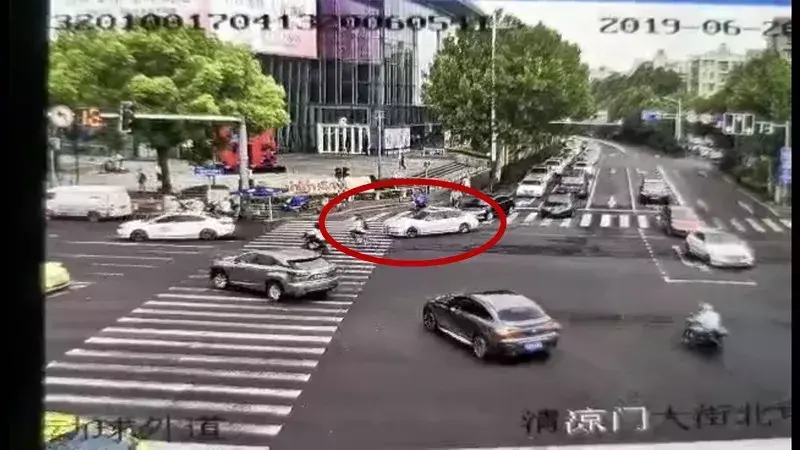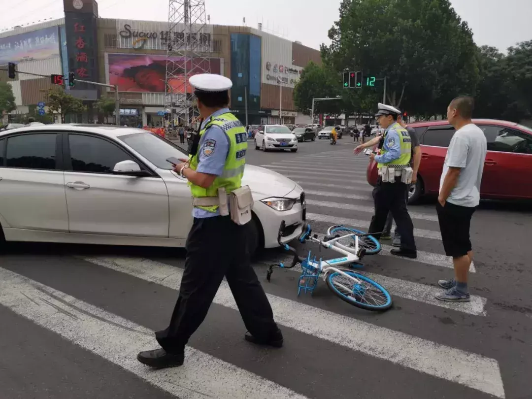 6月26号早晨8点40分左右,南京特警(巡警)支队武装巡逻二大队民警巡逻到中海环宇城附近时,发现一辆白色宝马轿车停在清凉门大街与北圩路路口,占据一股车道,一辆共享单车横倒在车头,于是民警上前询问。