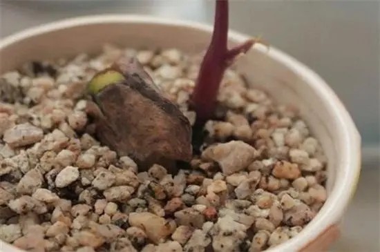 选取一颗已经熟透的芒果,将它的种子取出,从种子外壳的小缝隙处用刀子将其划开,然后将种子壳掰开,从里面取出种子的胚芽,放在水里浸泡一段时间。要事先准备好花盆和培养土,将种子半埋在土壤里,要主要将种子有胚芽的一头朝下,这样会有利于种子的发芽,然后将花盆放到温暖潮湿并且有阳光的地方养护。大约5、6天之后,种子就会发芽长大。
