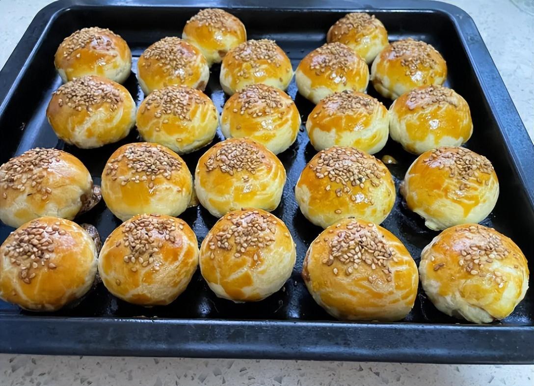 烘焙时需要用掌揉的方式进行,使饼皮变得均匀。内馅采用包心菜炒肉、笋干肉等材料,再加上重庆辣椒酱和特别酱汁,味道非常独特。