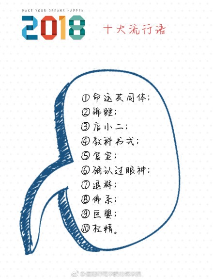 【年度流行语出炉 快看看你知道几个】据新浪微博报道 12月3日,《咬文嚼字》编辑部公布了2018年十大流行语。它们分别是:命运共同体、锦鲤、店小二、教科书式、官宣、确认过眼神、退群、佛系、巨婴和杠精。 对于为何大热“C位出道”没有入选,负责人告诉记者,“C位出道”已进入15条的备选名单,最后落选是因为字母C,“显得不够‘纯洁’”。