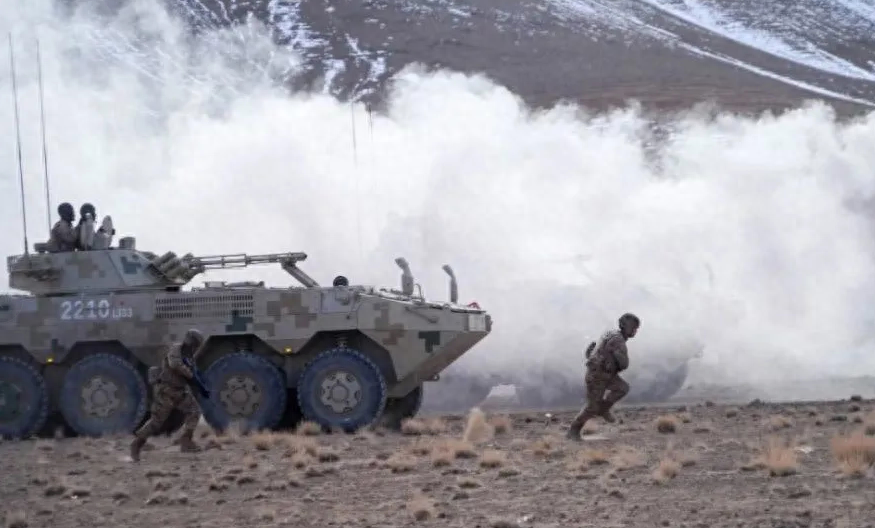 我军新疆军区某合成团的08式步兵战车掩护步兵开展进攻,解放军非常重视实战化演习