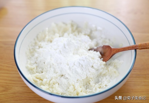 倒入玉米淀粉混合,如果太干可以加入适量牛奶