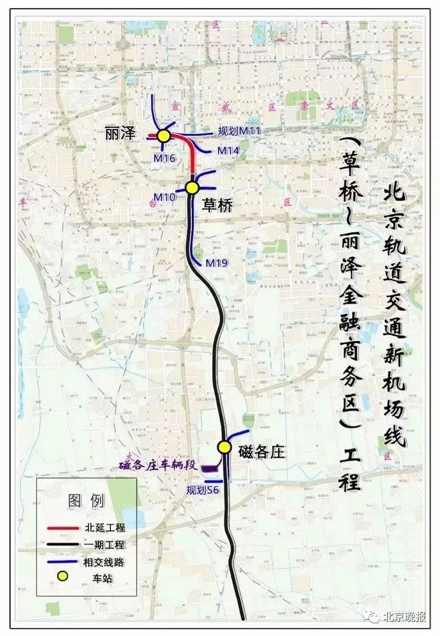 新机场线北延线路全长3.5公里,全部为地下线,只设丽泽金融商务区一座车站。同时,城市航站楼也改到了丽泽商务区。