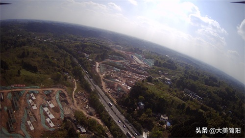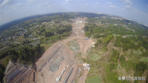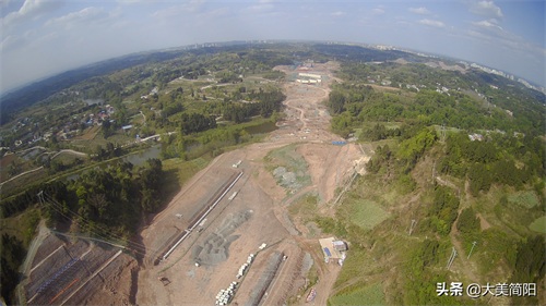 空港大道:成渝高速至简阳城区段、远处简阳城区、中间段为葫芦坝互通、然后有一段都在铺路基咯!