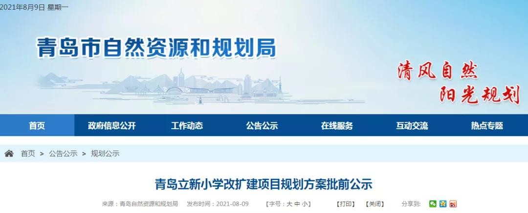 根据刚刚公示的规划方案显示,该项目位于市北区蚌埠路以南、宁乡路以西,为青岛立新小学改扩建项目。