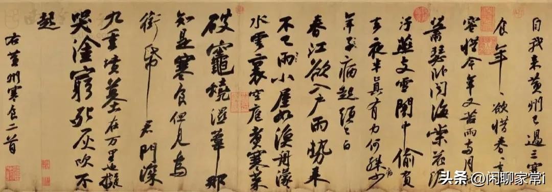 《寒食帖》又名《黄州寒食诗帖》或《黄州寒食帖》。是苏轼撰诗并书,墨迹素笺本,横199.5厘米,纵34.2厘米,行书十七行,129个字,民国时期被人从日本购回,后来一直收藏于台北故宫博物院。