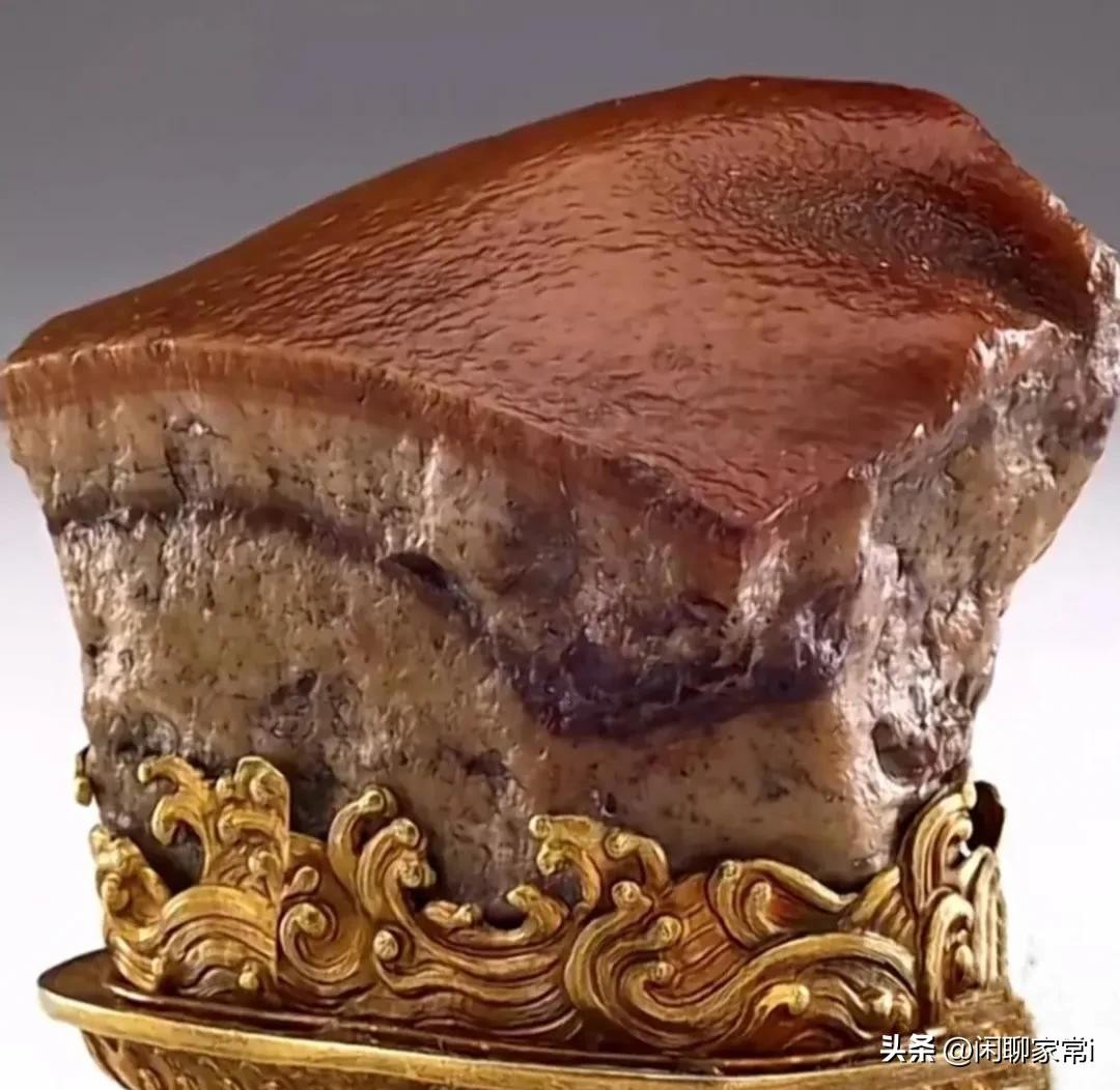 此件肉形石乍看之下,像不像是一块令人垂涎三尺、肥瘦相间的“东坡肉”,肉形石与翠玉白菜和毛公鼎并称台北故宫的镇馆三宝。约5.7cm高、6.6cm宽。这块肉形石是一块天然的石头,色峰纹理全是天然形成的,取自一块黄玉,经人的鬼斧神工,竟然就雕成了一块玉东坡肉。