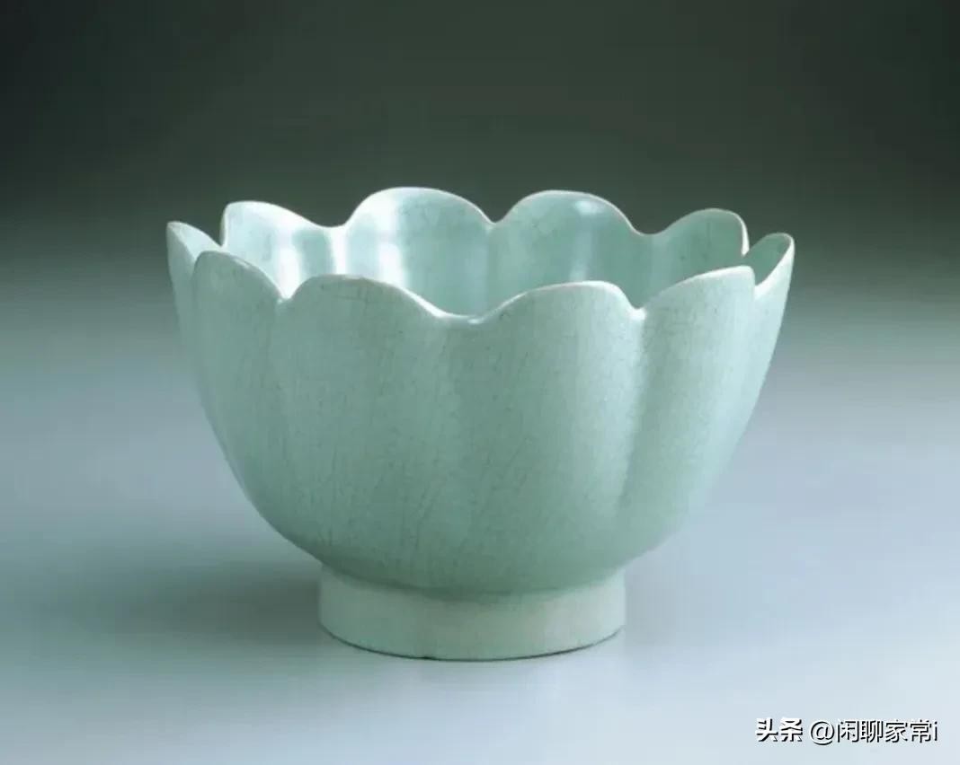 北宋汝窑《莲花式温碗》,北宋汝窑烧制瓷器,原器应与一执壶配套,为一温酒用器,晚唐至宋所常见。现藏台北故宫博物院。汝窑莲花温碗的釉色是鸭蛋壳青色,属于天青色中的一种,碗的釉层比较单薄,故而伴着造型的转折变化,也就产生了或浓或淡、或深或浅的层次转变。