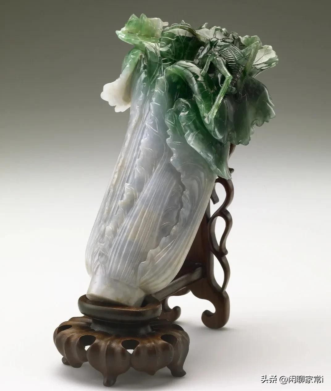 翠玉白菜是一块难得的翡翠极品,被称为“故官招牌”。翠玉白菜长为 18.7 厘米,宽为 9.1厘米,高为 5.07 厘米。它是由一块半白半绿的翠玉雕琢而成的翡翠珍品。流传最广的一种说法就是认为这个翡翠白菜是来自于慈禧的陵墓中。1948年12月–1949年2月文物分三批运往台湾,总共有2972箱,翠玉白菜就是其中的一件。
