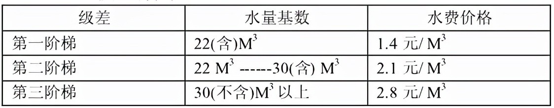 所谓阶梯式水价,就是将水价分为不同的阶梯,在不同的定额范围内,执行不同的价格。使用水量在基本定额之内,采用基准水价,如果使用的水超过基本定额,则超出的部分采取另一阶梯的水价标准收费。