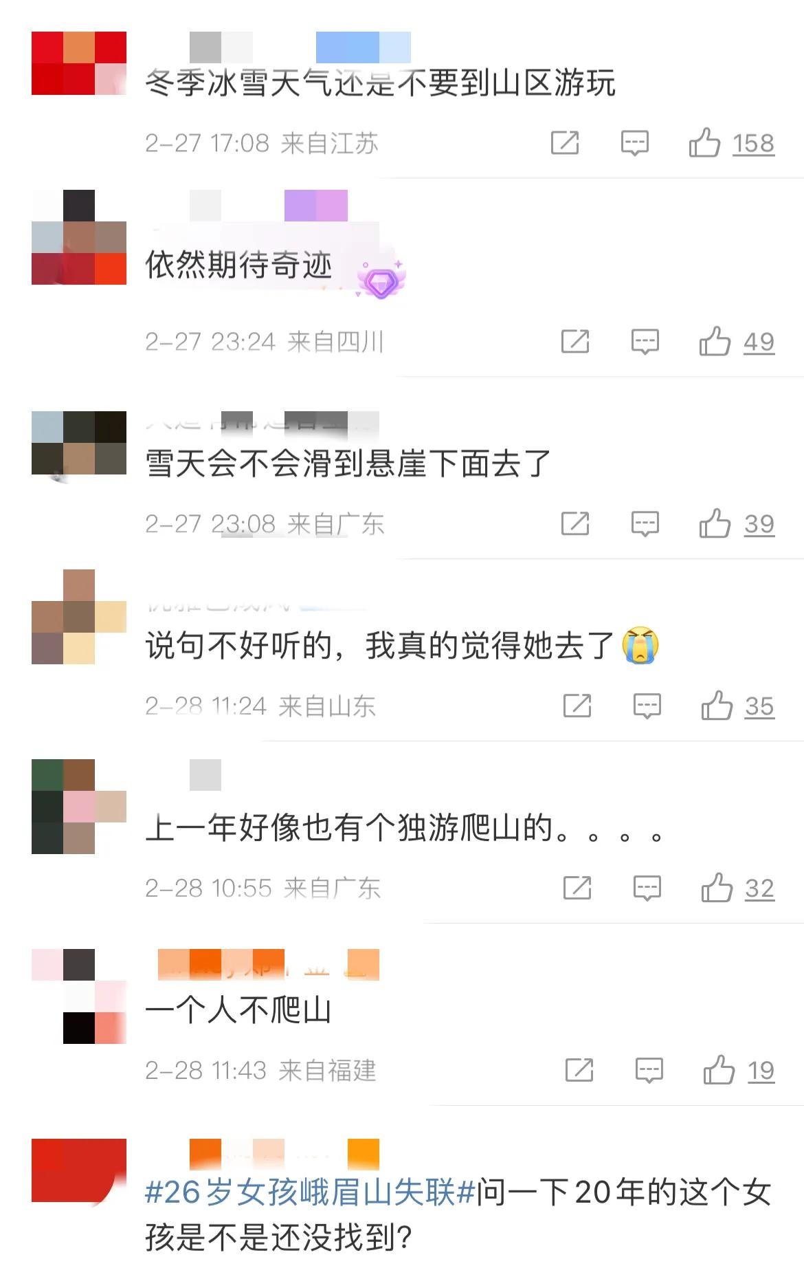 近日,关于陕西西安女大学生陈小佳在峨眉山游玩时失联的消息引起了广泛关注。2月7日23岁的陕西西安女大学生陈小佳(化名)在峨眉山游玩时失联一事。经报道发出后,引发广泛关注,峨眉山及其周边区县居民纷纷提供寻人线索,遗憾的是经过陈小佳母亲李女士的辨别,上述线索都不是失联的陈小佳。搜救人员也进一步扩大了搜救范围,下到了峨眉山雷洞坪周边悬崖下方100—200米处,仍旧没有发现陈小佳的踪迹。