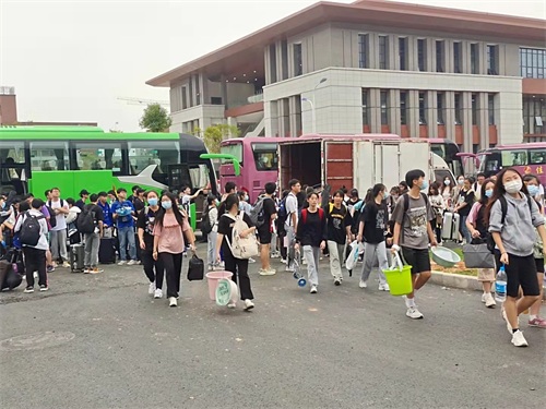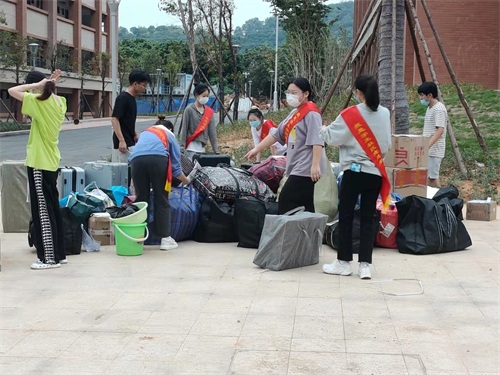 20日,学校安排客运车接送学生和货车运送物品,并在新宿舍楼前设立搬迁服务点,安排40名志愿者为即将入住的同学们提供帮助,搬迁工作顺利进行。