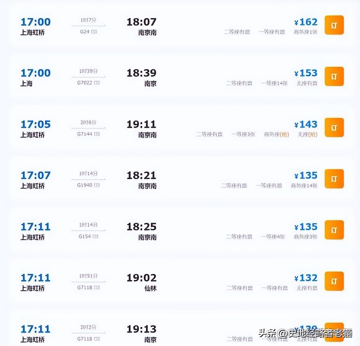 由于上海与南京之间的长三角地区是我国经济活力最高的区域之一,沿线对于交通出行的需求较大,所以上海与南京之间列车特别密集。小编查阅了南京与上海间的列车时刻表,发现南京和上海段的高铁和普铁线路将开行605次列车,其中上海到南京304次列车,南京到上海301次列车。