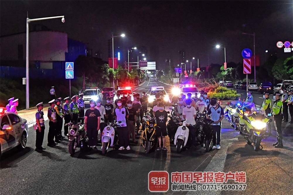 最近,南宁一群“鬼火少年”在晚上驾驶非法拼装的电动车,在江南区高棠路竞速、炫技,存在噪声扰民,市民对此反映强烈。6月9日晚,南宁交警部门出动上百名警力进行集中整治,当场查获32辆违法嫌疑车和32名嫌疑人。