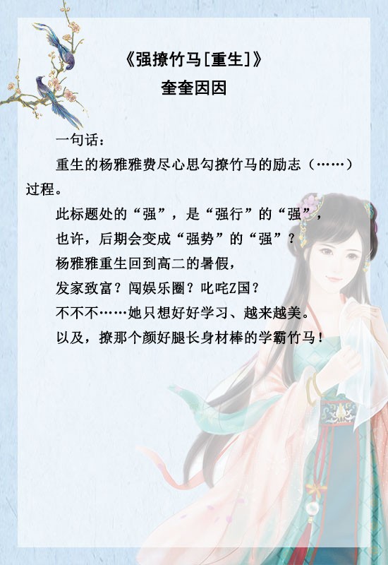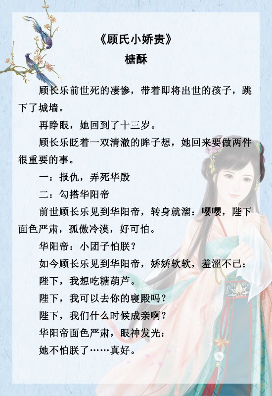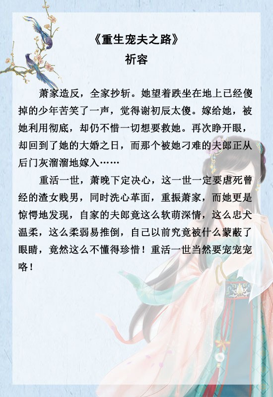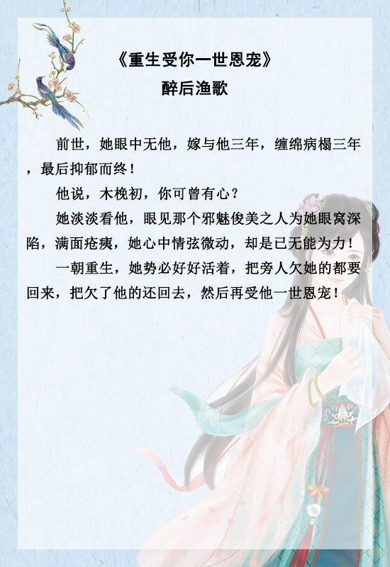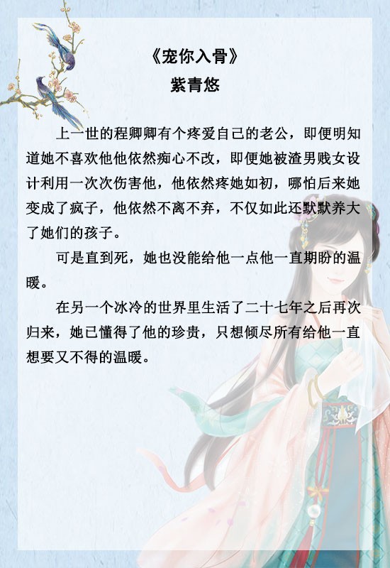 《强撩竹马[重生]》《顾氏小娇贵》《重生宠夫之路》《宠你入骨》《重生受你一世恩宠》