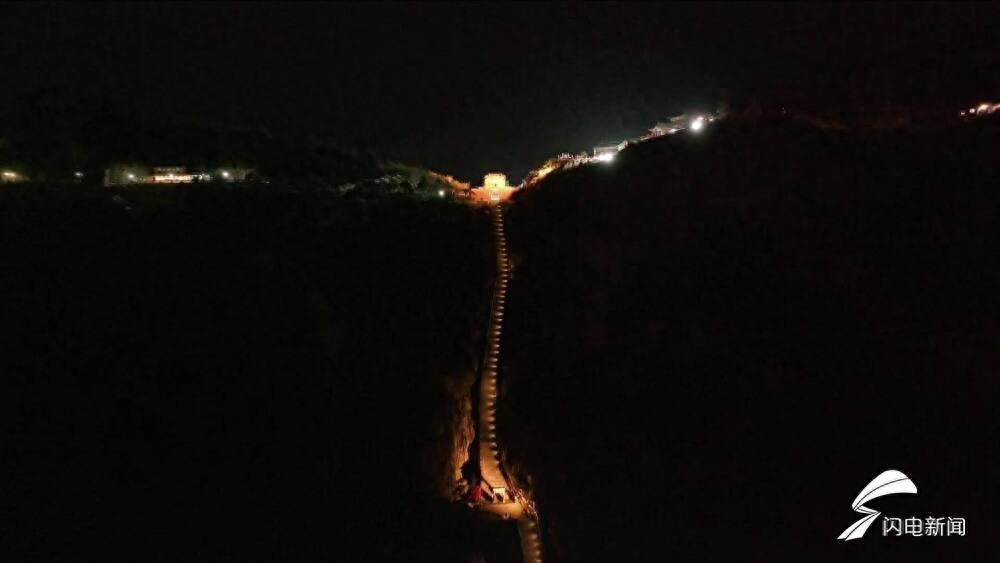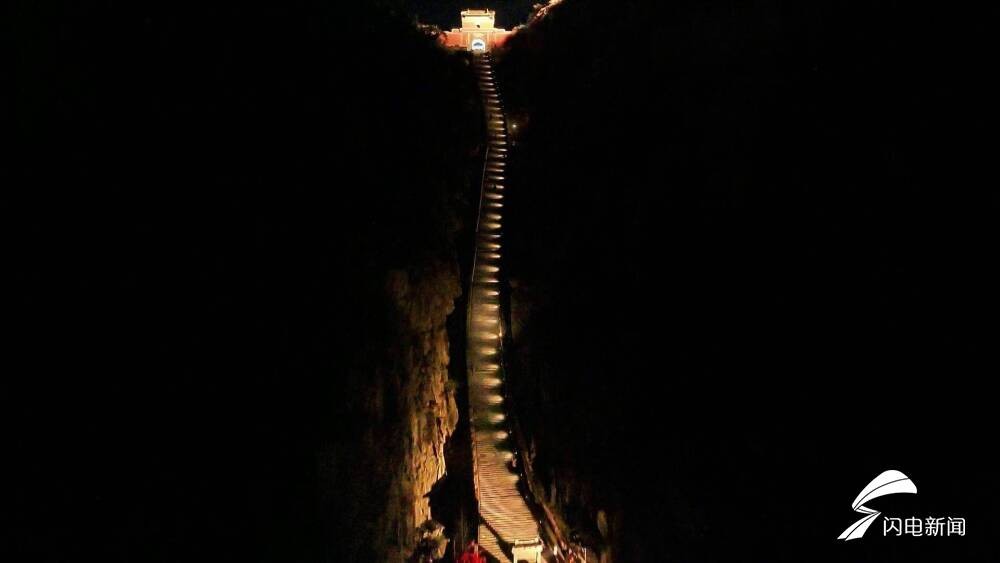 醉美泰山夜色 亮灯后的泰山十八盘犹如金龙盘旋